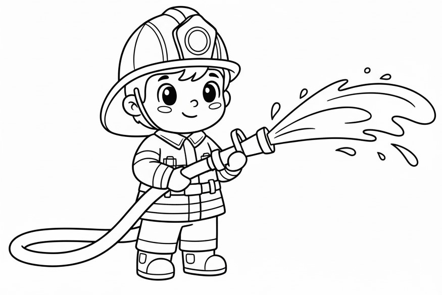 Bu boyama sayfasında itfaiyeci su sıkıyor. Basit ve okul öncesi için bir itfaiyeci figürü, elinde basit bir hortum tutuyor, hortumdan çıkan su çizimi ile rahatlıkla boyamaya uygun bir sayfa oluşturuldu. Çok sade olan bu görsel ile okul öncesi öğrenciler rahatlıkla boya yapabilir.
