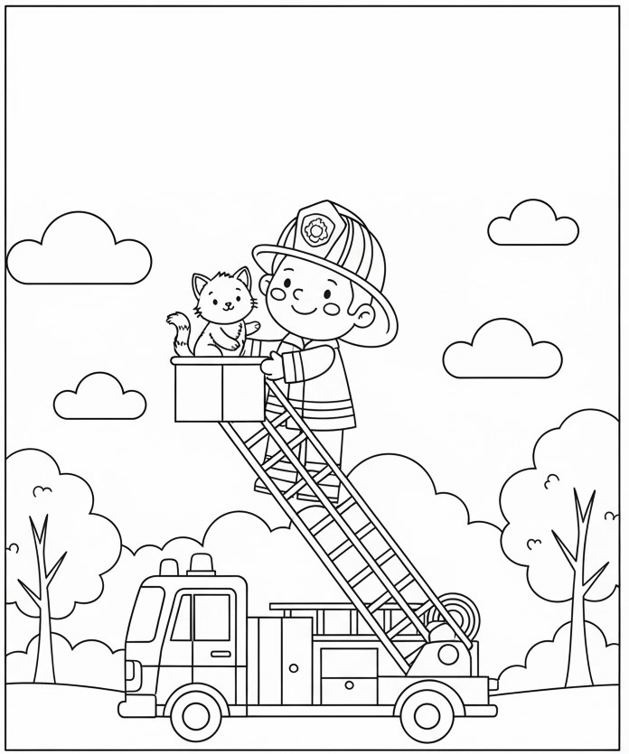 Üstteki boyama sayfasında ise büyük ve dost canlısı bir itfaiye aracı, yanında gülümseyen bir itfaiyeci figürü ile kolay bir boyama sayfasını pdf ve word olarak indirmenizi sağladık.
